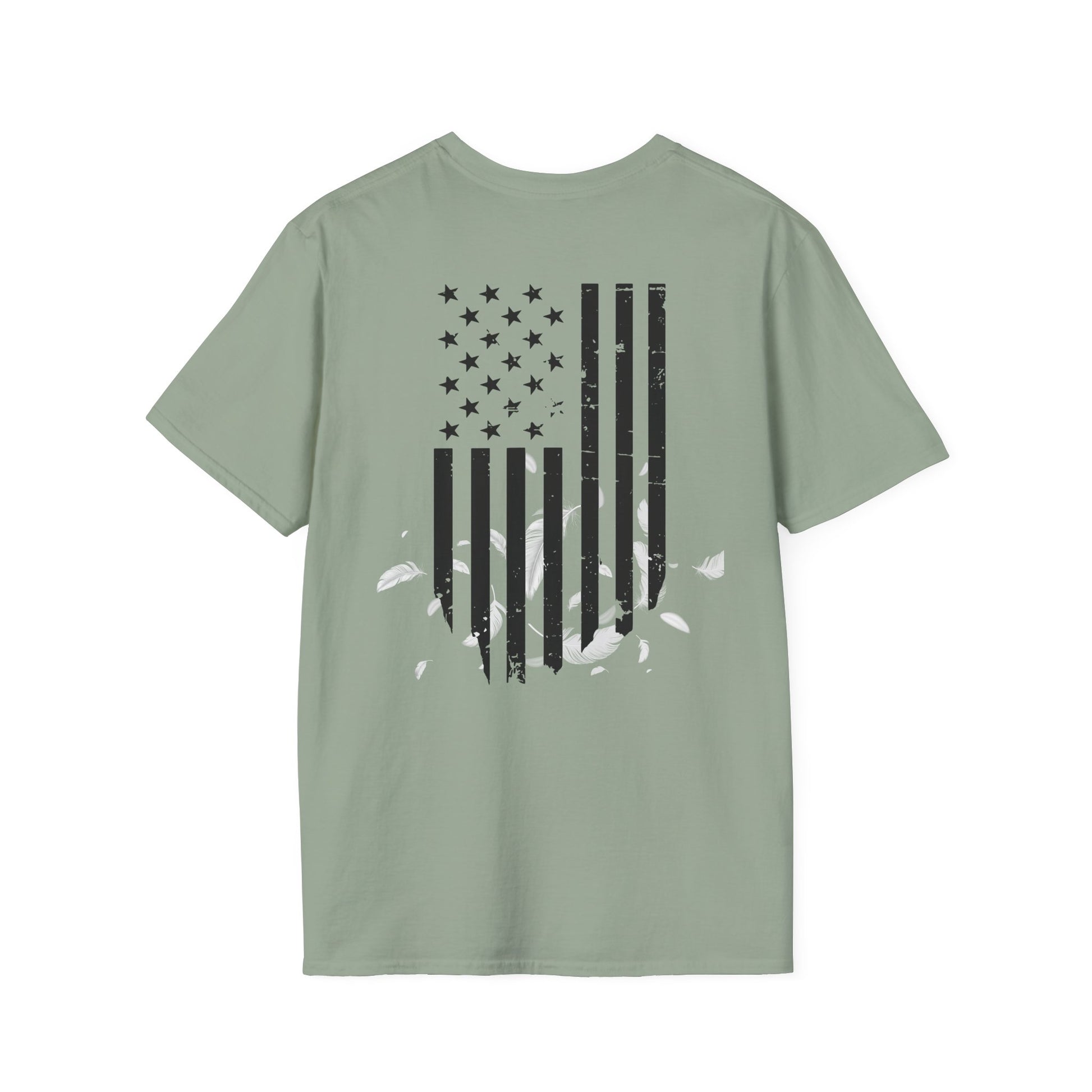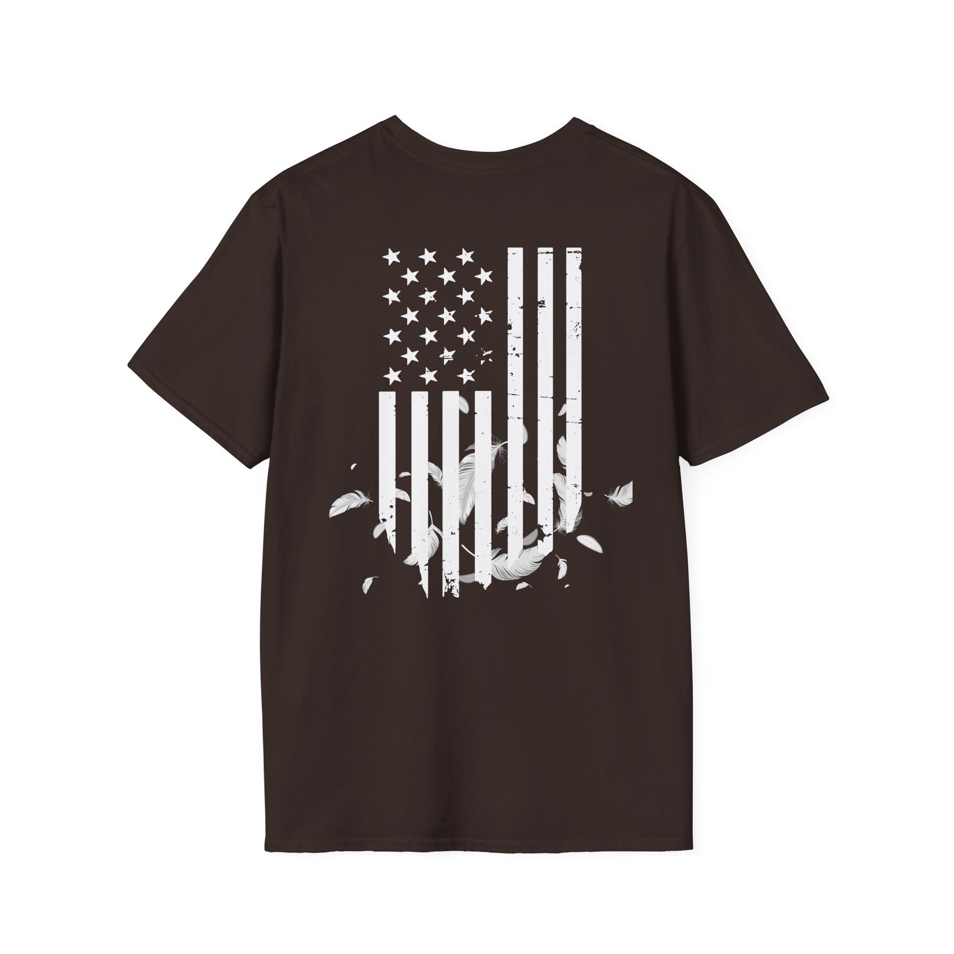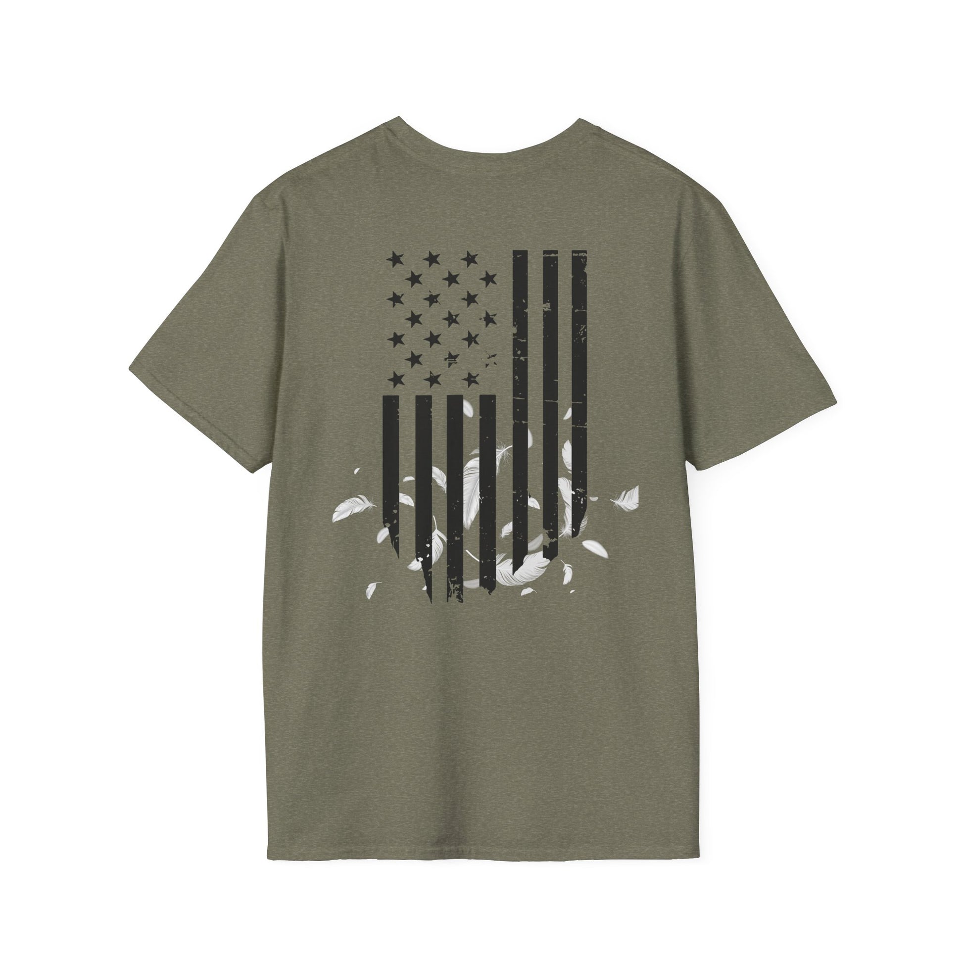 Stand tall and rugged in the COOP Tee, designed for those who live by grit and purpose. Featuring the bold COOP logo across the chest—Creating Our Own Paradise—this shirt pairs rugged durability with everyday comfort. On the back, a distressed American flag with scattered feathers symbolizes freedom, resilience, and farm-bred pride.